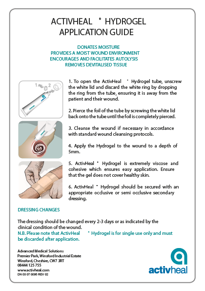 To use ActivHeal Hydrogel, first clean the wound and dry the skin around it, then apply the gel directly as a primary dressing in a layer at least 5mm thick, covering any dead space, and secure with a secondary dressing like foam or film; change every 2-4 days or as advised, removing gently with water or saline.